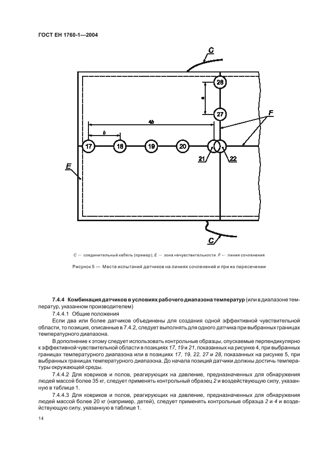 Настоящий стандарт распространяется на коврики и полы, реагирующие на давление, независимо от вида используемой энергии, например, электрической, гидравлической, пневматической или механической. Настоящий стандарт распространяется на коврики и полы, предназначенные для обнаружения: а) людей массой более 35 кг; б) людей массой более 20 кг (например, детей). Настоящий стандарт не распространяется на обнаружение людей массой менее 20 кг. В настоящем стандарте не устанавливаются размеры и конфигурация эффективной чувствительной области коврика (ковриков) или пола (полов), реагирующего на давление, для какого-либо конкретного применения |