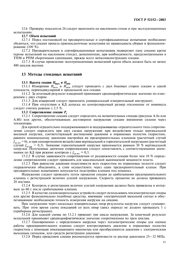 - от 0,8 до 3,5 м включительно - по падению или восстанию столба; - св. 3,5 до 6,0 м включительно - по падению пласта. Стандарт устанавливает номенклатуру показателей качества и их применяемость, основные параметры и общие технические требования (в том числе к конструкции, технологичности, надежности, безопасности), гигиенические и эргономические требования к материалам, покупным изделиям и рабочим жидкостям, а также методы испытаний крепей. Стандарт не распространяется на комплектные крепи и крепи угледобывающих агрегатов |