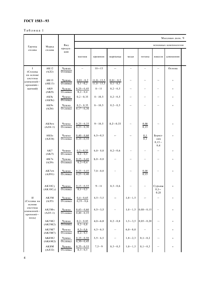 ГОСТ 1583-93 МЕЖГОСУДАРСТВЕННЫЙ СТАНДАРТ СПЛАВЫ АЛЮМИНИЕВЫЕ ЛИТЕЙНЫЕ Технические условия