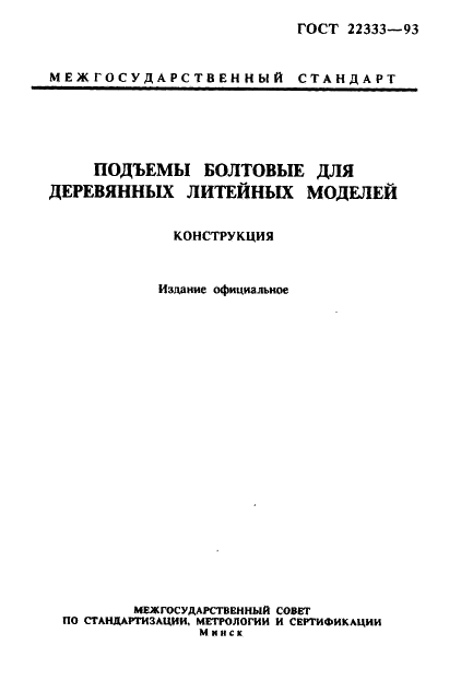 | Название рус.: | Подъемы болтовые для деревянных литейных моделей. Конструкция | |