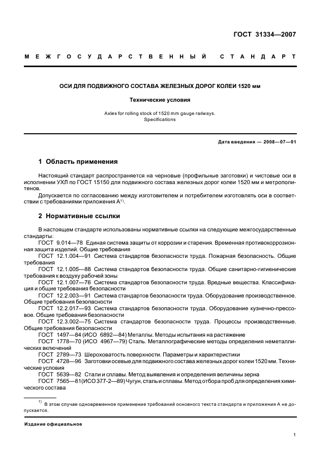 | Область и условия применения: | Настоящий стандарт распространяется на черновые (профильные заготовки) и чистовые оси в исполнении УХЛ по ГОСТ 15150 для подвижного состава железных дорог колеи 1520 мм и метрополитенов | |